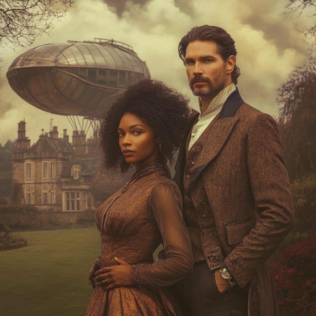 Создано на основе запроса: mixed race couple where the woman is a 34 year old african american and the man is a white 38 year old English lord (who looks like Eric Bana) posing in front of a zepplin beside a country manor house in the midlands; give it a steam punk feeling; in the style of English portraiture --- Автоперевод: Смешанная расовая пара, где женщина - 34 -летняя афроамериканца, а мужчина - белый 38 -летний английский лорд (похожий на Эрика Бана), позирующий перед цепесом рядом с сельской усадьбой в Мидлендсе; Отлично выглядит? 🤔 https://dzen.ru/id/65c0c65c86e4f837c27b24d7 #ИИ #AI #нейросеть #midjourney #art