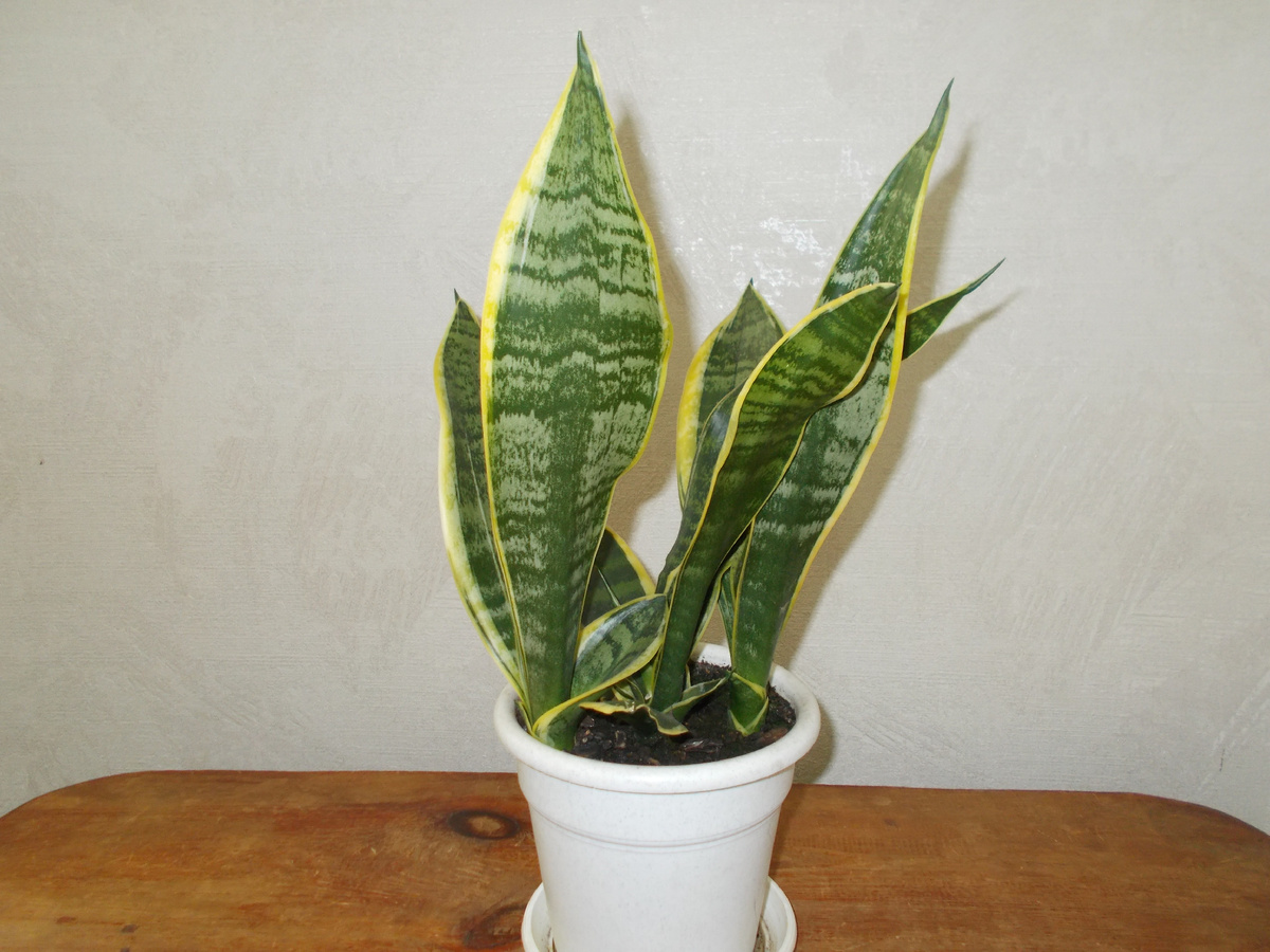 Про этот цветок знают многие. У кого-то он стоит на работе, у кого-то дома. Кто-то цветок называет тещин язык, кто-то щучий хвост. На самом деле цветок называется сансевиерия. Видов сансевиерии много. У меня растет сансевиерия Лауренти. Красивый, не очень высокий цветок с яркой, желтой каймой по краю листа. Была посажена одна не большая детка, сейчас цветку 2 года.