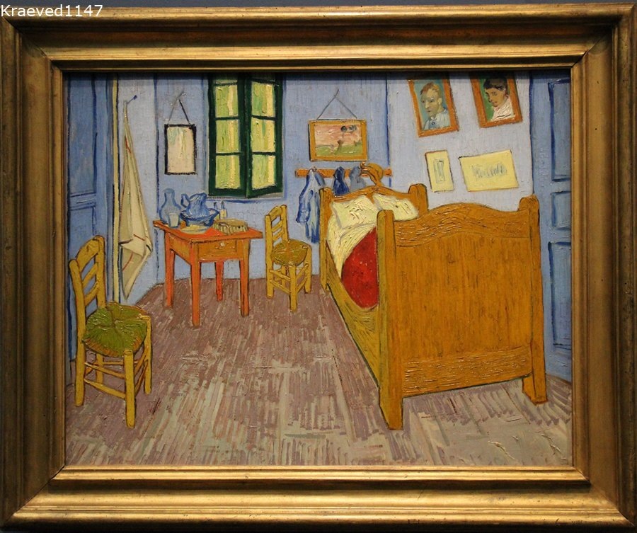 Несколько лет подряд 30 марта я вспоминаю о Винсенте Ван Гоге. Он родился в этот день теперь уже 172 года назад. Мне нечего добавить к сказанному ранее. На канале и на сайте я публиковала изображения нескольких картин художника, которые запечатлела. Увы, в фотоальбоме сохранилось не всё виденное. Но что же - ранние публикации - это повод не отмечать день рождения мастера? Нет! Отмечать! Тем более, что неожиданно в альбомах нашла знаменитую "Спальню Ван Гога в Арле", написанную в 1889 году. Почему-то ранее я не показывала эту картину. Я беру путеводитель по музею д'Орсе, открываю страничку и читаю разбор картины "Спальня Ван Гога в Арле". "Вновь и вновь он принимается писать "Спальню в Арле, которая предназначена матери и сестре Уиль; на картине яркими гармоничными красками изображённые детали располагаются в определённом порядке в несколько тесноватой композиции, перспектива которой внезапно искривляется: пол вдруг поднимается кверху, словно переходя в стену, а фокус меняется в
