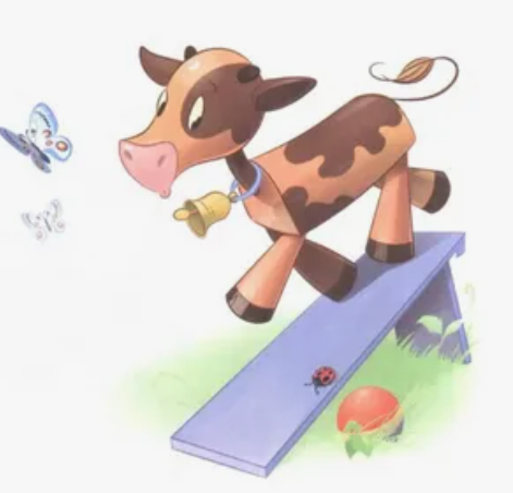 В стихотворении Агнии Барто рассказывается о бычке, который идет по досточке и качается.
