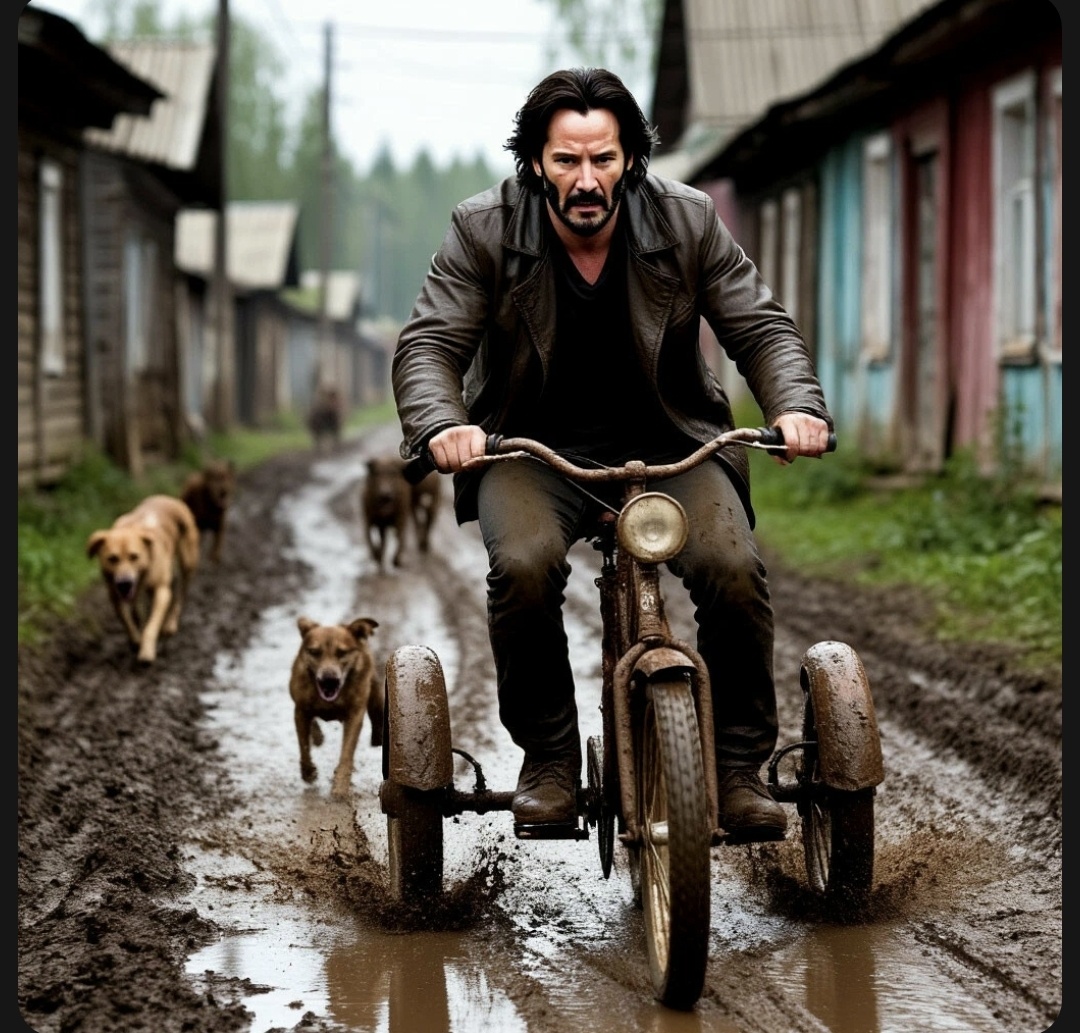 Знаменитый голливудский актёр Киану Ривз, известный ролями в «Матрице» и «Джоне Уике», однажды оказался в эпицентре событий, которые затмили даже его киноподвиги. Всё началось с его тайной поездки в Россию — не на премьеру фильма, а в поисках вдохновения. И что же? Российская глубинка подготовила для него сюрприз… --- Часть 1: «Инкогнито в деревне» Киану давно мечтал увидеть «настоящую Россию» — без пафоса мегаполисов. Он отправился в маленькую деревушку под Нижним Новгородом, где его никто не узнал… Пока не встретил местных сторожей — стаю бойцовских дворняг. «Привет, ребята», — улыбнулся актёр, но собаки, видимо, фанатели не от «Джона Уика», а от охраны огородов. Они зарычали, и Киану понял: пора бежать. --- Часть 2: Трёхколёсный «болид» и грязевая битва Поблизости стоял ржавый детский велосипед — единственное «транспортное средство». Не раздумывая, Ривз вскочил на него. Кадр достоин мема: супергерой в грязи, крутящий педали под лай своры. «В "Матрице" я убегал от пуль, а