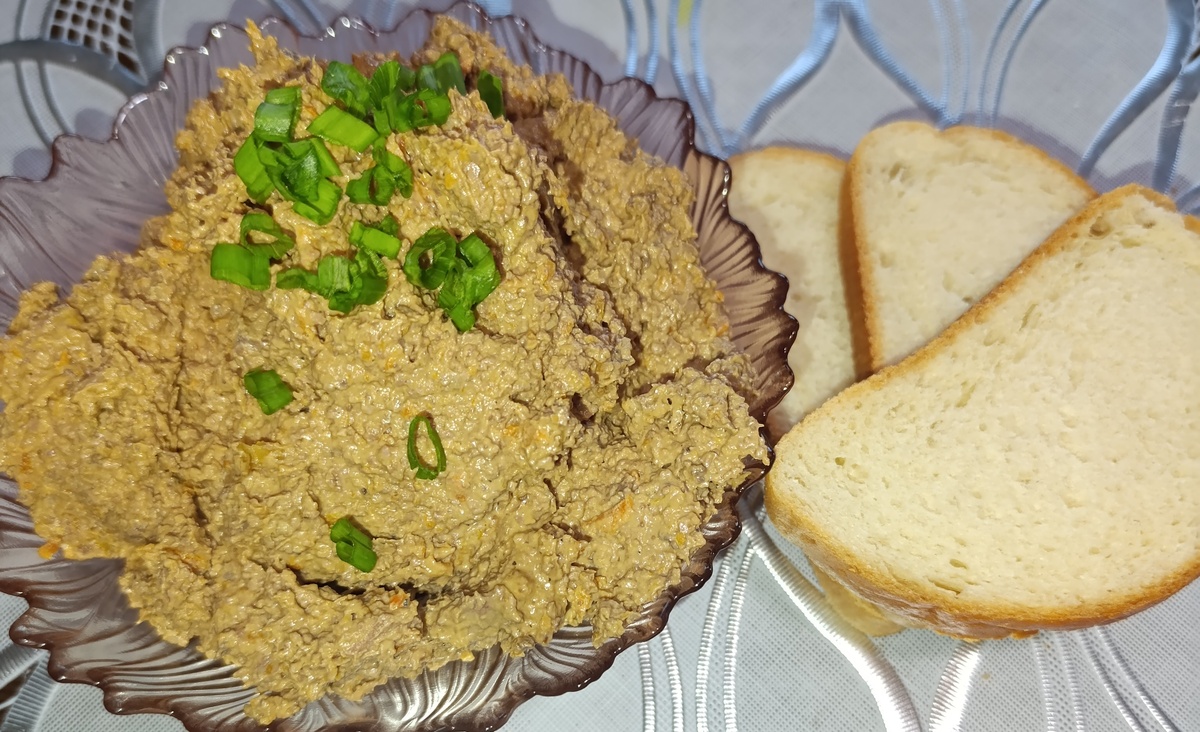 Ингредиенты: печень 500 гр масло сливочное 100 гр морковь 1 шт лук 1 шт соль 0,5 ч л перец 0,5 ч л гранулированный чеснок 0,5 ч л Самый простой рецепт, который я когда-либо видела. Из указанного количества ингредиентов получается около 600-650 гр паштета. Себестоимость минимальна, а вкус обалденный и с магазинным не сравниться. Кроме того, домашний паштет можно заморозить. Приготовил и заморозил половину. Когда нужно - достал из морозилки. Разморозка только в холодильнике. Итак, варим печень. При варке печени после первого ее закипания, я откидываю ее на дуршлаг, меняю воду и варю дальше. Не солю, не перчу, никаких трав не добавляю. Морковь протираю на терке и обжариваю на большом количестве растительного масла. Добавлять масло не бойтесь, печень продукт сухой, она все впитает. Далее складываю отварную печень в миску (можно ее немного измельчить ножом), добавляю морковь с луком и маслом, специи и сливочное масло. Перебиваю все блендером. Иногда блендер перегревается и отключается. Под