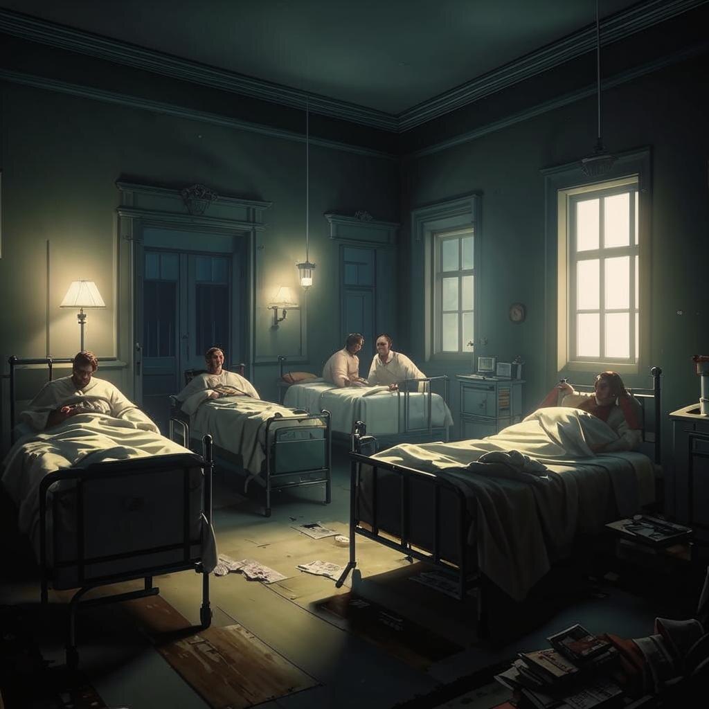 Темнота в палате была густой, как деготь. Она не просто поглощала свет — она казалась живой, шевелящейся в углах, прячущей в своих недрах что-то мелкое, шуршащее, голодное. Кирилл лежал неподвижно, стараясь не шевелить свежим шрамом на животе. Аппендицит. Казалось бы, пустяк. Но вот это место… Оно не лечило. Оно пожирало. — Эй, новенький, — прошептал сосед с крайней койки, — не спи к стене. — Почему? — Кирилл повернул голову, но в темноте разглядел лишь бледное пятно лица. — Потому что они там... Первая ночь стала кошмаром. Он проснулся от зуда — сперва легкого, словно мурашки, потом нестерпимого, жгучего. Руки сами потянулись к телу, и под пальцами кожа оказалась неровной, бугристой от бесчисленных укусов. — Что за… — Клопы, — равнодушно бросил сосед. — Добро пожаловать в пятое отделение. Утром Кирилл разглядел себя в зеркале в туалете. Тело было покрыто красными точками, будто его прошили иглой. Хуже всего было там, где швы — воспаленные ранки пульсировали