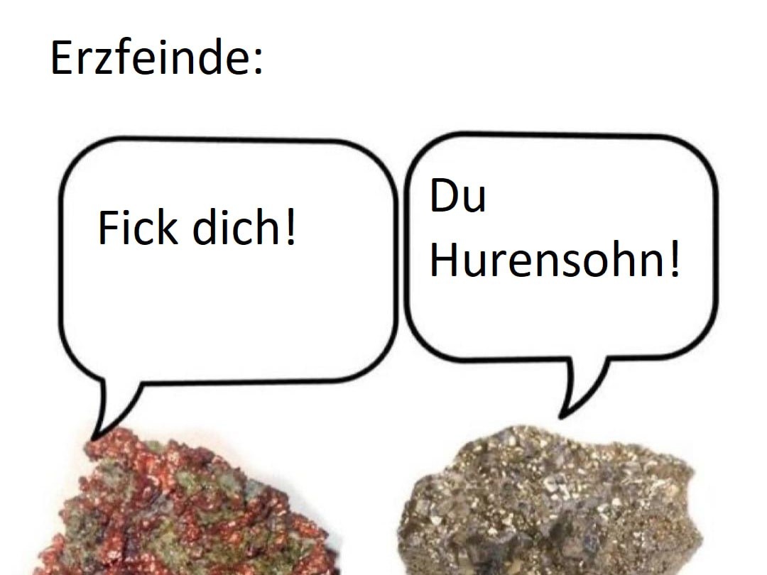 💡 Ну а das Erz как отдельное существительное – это просто руда. Теперь вы понимаете, почему Erzfeinde на картинке – это два куска руды 😁