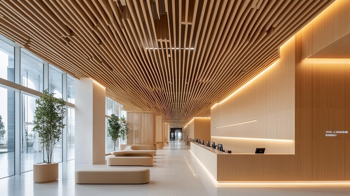 Создано на основе запроса: Interior design Lobby hospital inspired by foster+partner architecture, lobby with waiting area, modern and