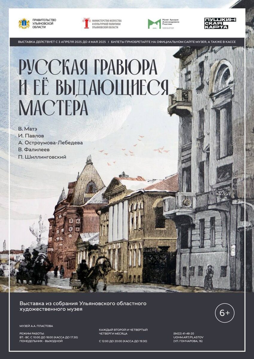 Ульяновский областной художественный музей собрал более 40 потрясающих графических работ выдающихся русских гравёров. В экспозиции вы увидите шедевры Василия Матэ и его талантливых учеников: Анны Остроумовой-Лебедевой, Ивана Павлова, Вадима Фалилеева и Петра Шиллинговского.