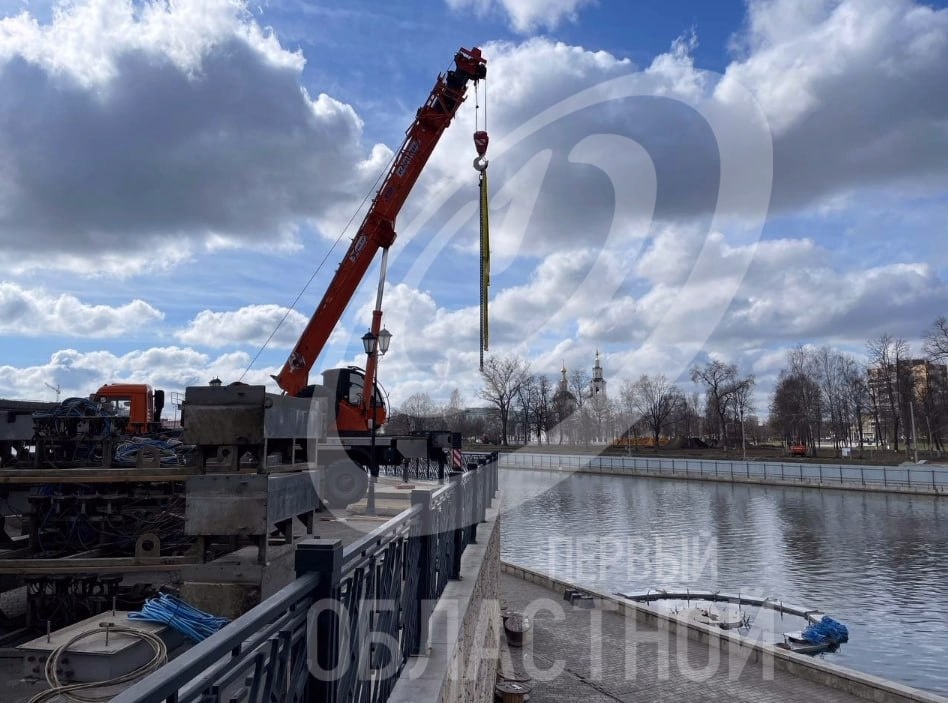 На Стрелке в Орле (несмотря на выходной) ведут работы по монтажу светомузыкального фонтана