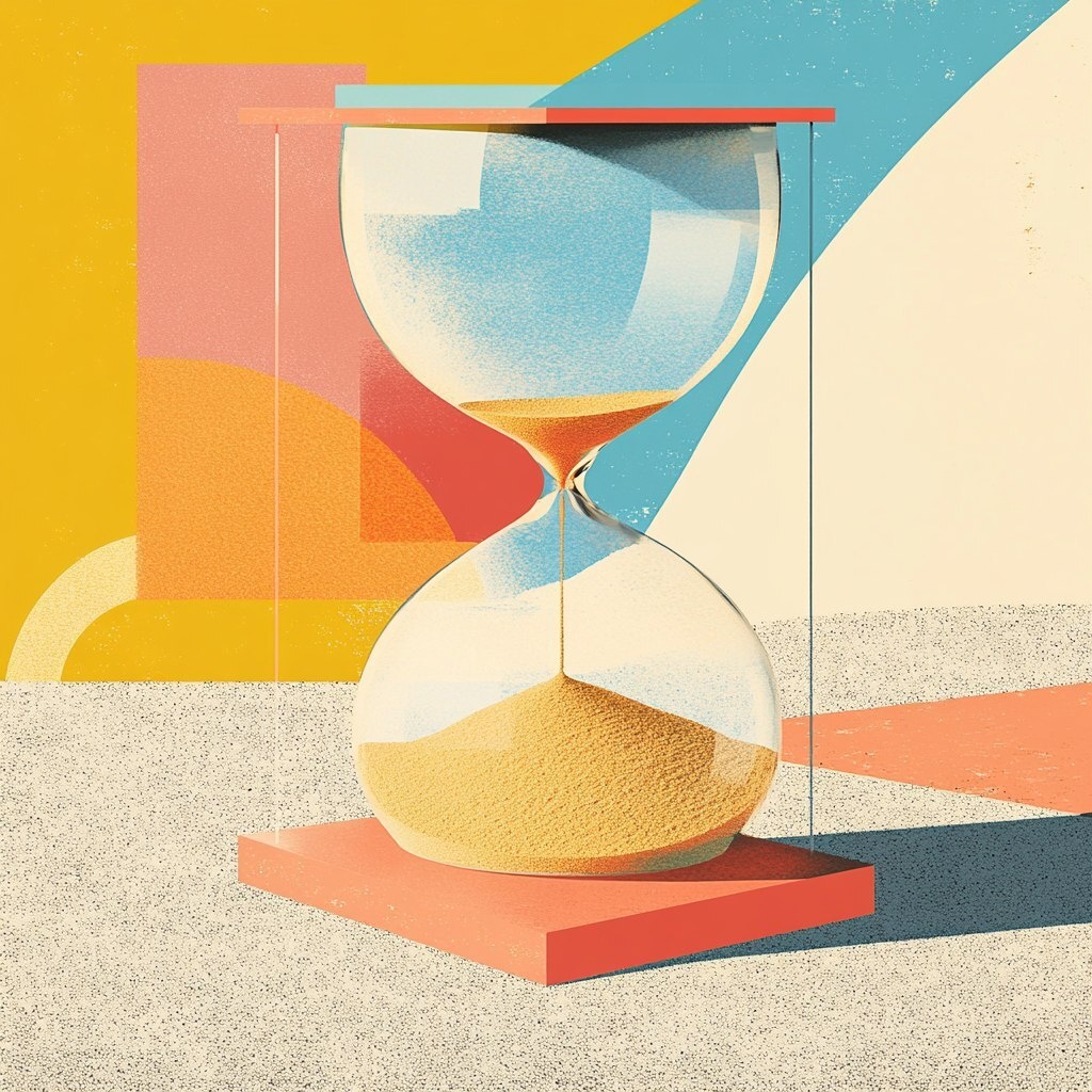 Создано на основе запроса: illustration for website showing a sandclock with only the bottom full of sand, flat but with perspective