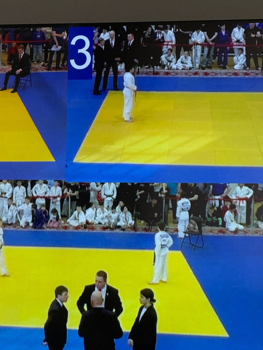 Толик дошёл до полуфинала. Проиграл выход в финал. Причём схватка была долгая, а соперник на голову с шеей выше и крупнее. Толя сильно ему сопротивлялся. Но чуточку уступил.