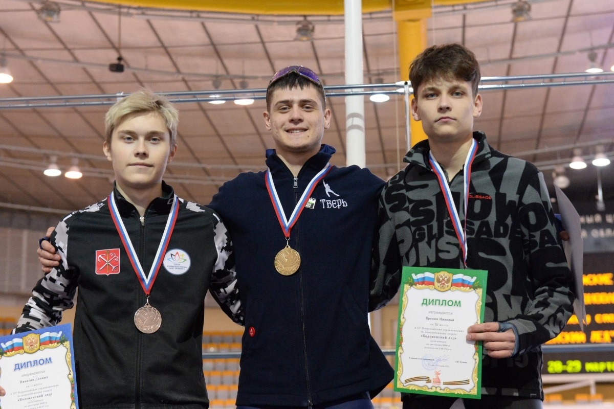 Егор Антошин завоевал золото на дистанции 3000 метров среди юниоров. С 28 по 29 марта в подмосковной Коломне прошли 15-е Всероссийские соревнования по конькобежному спорту «Коломенский лед». Заключительные старты сезона-2024/25 собрали на ледовой арене конькобежного центра «Коломна» более 160 спортсменов (мужчин и женщин, юниоров и юниорок, юношей и девушек) из 13 регионов. В двухдневной программе разыгрывались комплекты наград в разных возрастных группах на отдельных дистанциях. На дистанции 3000 метров среди юниоров 18 – 19 лет победу одержал представитель Тверской области Егор Антошин (на снимке в центре) с результатом 4 минуты 26,61 секунды. В соперничестве за золото наш земляк опередил Даниила Никитина из Санкт-Петербурга (4:46,67) и Михаила Крупина из Ивановской области (5.00,70). – Соревнования прошли очень хорошо, все понравилось. Установил личные рекорды на 500, 1000 и 1500 метрах, на дистанции 3000 м – первое место. Лед очень хороший, катил. От следующего сезона жду только по