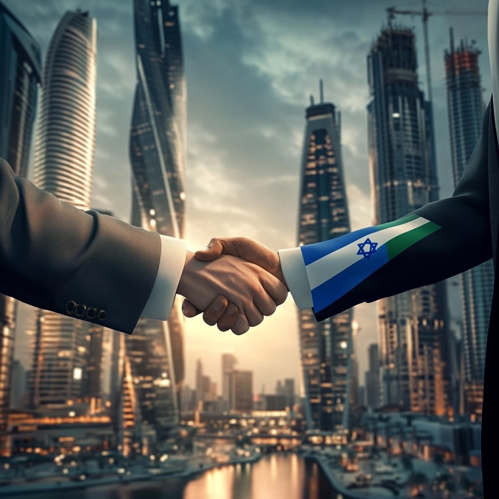 Создано на основе запроса: Create a real photo in 4k quality with a landscape of futuristic towers in the background and in the foreground a handshake and a flag of the United Arab Emirates and Israel --- Автоперевод: Создайте настоящую фотографию в качестве 4K с ландшафтом футуристических башен на заднем плане и на переднем плане рукопожатия и флага Объединенных Арабских Эмиратов и Израиля Неплохо получилось? 🤔 https://dzen.ru/id/65c0c65c86e4f837c27b24d7 #ИИ #AI #нейросеть #midjourney #art
