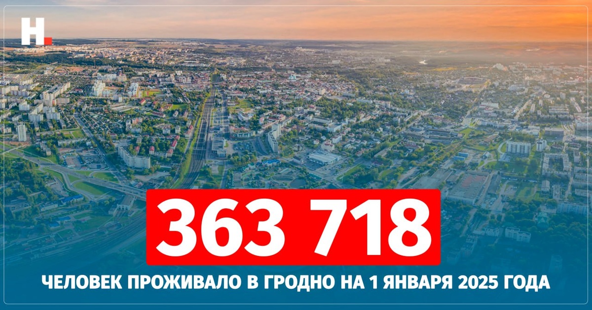 📈 Число дня. Гродно сохраняет третье место в стране по численности населения. По данным Белстат население города выросло за год на 2603 человека @nashaniva на основании данных Национального статистического комитета составила топ-25 городов Беларуси по численности населения. В рейтинг включены только города с населением выше 40 тысяч человек. Среди областных центров рейтинг выглядит следующим образом: 1️⃣Минск — 1 996 730 2️⃣Гомель — 501 193 3️⃣Гродно — 363 718 4️⃣Витебск — 358 927 5️⃣Могилёв — 352 896 6️⃣Брест — 346 061 🦌 В прошлом году население Гродно оценивалось в 361 115 человек. В спину уже не дышит Витебск — отставание увеличилось: с 2720 человек в 2024 году до 4791 в 2025-м. 🇧🇾 Среди городов Гродненской области в топ-25 вошли 🦁 Лида (12-е место, 103 262; в 2024 году — 103 916), 🐘 Слоним (24-е место, 48 402; было — 48 907) и замыкает список 🐺 Волковыск (25-е место, 41 020; было — 41 510). Рост населения традиционно фиксируется в 🌳 Островце — плюс 149 человек за