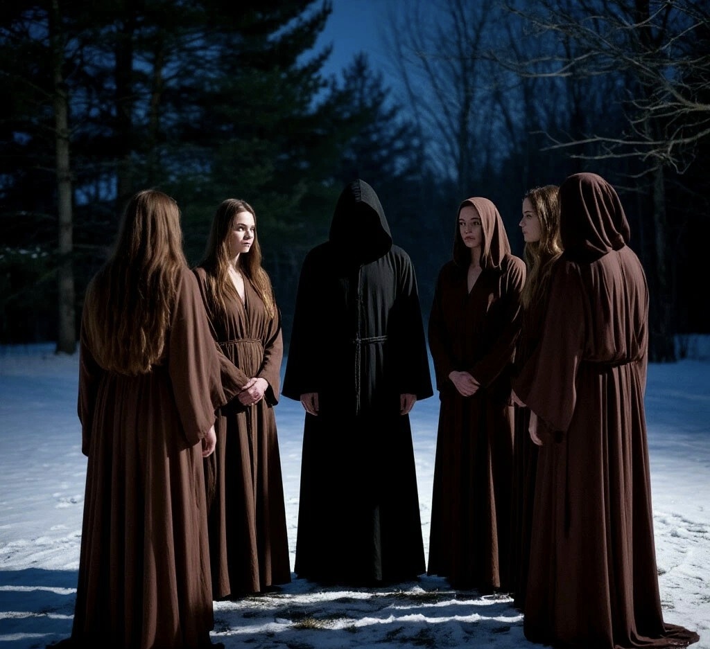 В середине церкви широким полукольцом горела полоса пламени. С другой стороны кольцо замыкал живой полукруг из дюжины женщин в одинаковых рваных одеждах. Ближе к выходу сгрудились люди, крайне неприглядные в своем убожестве. Я бы принял их за бомжей, но были они слишком неподвижными. Нечто торжественное было в их позах, а их землистые лица даже в красном свете - пламени оставались безжизненными. Все протяжно мычали низкую - ноту. Вдруг вой прервался.
