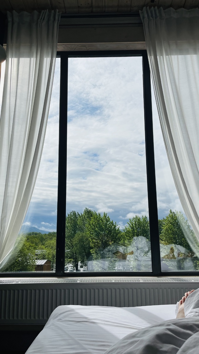 Утро. Чемодан сделал свое дело! Ура! За окном солнце! Начало темы здесь: Завтрак, прогулка. В солнечную погоду нам открылись совсем другие виды. -Ну, это же совсем другое дело. Теперь будем придумывать себе программу событий. Пока мы знаем только то, что первые дни решили никуда не бежать, не устраивать гонку, а просто подышать, побыть, наслаждаться. Мозгу отдыхать не просто. Первые дни - расслабляем мозг. Термальные источники и «горячительные» ванны в помощь. Вода в бассейне, джакузи, кране и трубах отопления здесь круглый год нагревается природой. Представляете!? Раньше жители Паратунки не платили за отопление. Не знаю, как сейчас. Наверное только за охлаждение платят😉. Прогулки по округе не похожи на наши обычные «Вышли и пошли куда глаза глядят». Двигаемся с учетом рекомендаций и рассказов местных. -Территория базы огорожена, а за территорией вчера видели медведя прямо на той дороге, по которой вы приехали. -Спасибо, что предупредили. Камчатка - быстрее всех психологов учит