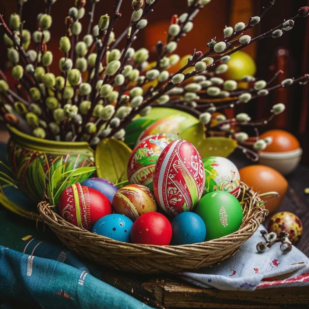 Всем добра. Скоро великий и светлый день Пасхи наступит. Но перед Пасхой, всю неделю: нельзя употреблять алкоголь. Мясо, рыбу и молочные продукты, тоже убирают из рациона. Люди, которые постятся для них - ограничения в пост большие. И сам пост длится с 3 марта по 19 апреля. Но, для мирских обычных людей, всё таки нужно придерживаться хотя бы данных ограничений. Само же воскресенье, день Пасхи - это время радости и угощений. Все пекут сдобу, красят яйца. И конечно же, главным на столе, выставляют кулич. Куличи бывают из дрожжевого теста и сдобные, творожные. С изюмом и курагой. Яйца - основной цвет должен быть красным. Именно красным яйцом, на утро Пасхи нужно умыться, чтобы быть здоровым весь год, а все недуги, чтоб ушли. А уже, после окрашивают яйца в разные цвета радуги. Плёнка, которая покрывает всё яйцо полностью не считается покраской. и не идёт как пасхальное, не смотря на то, что в современном мире к ней приспособились. В ночь с 19 апреля на 20 апреля, зажигают благодат