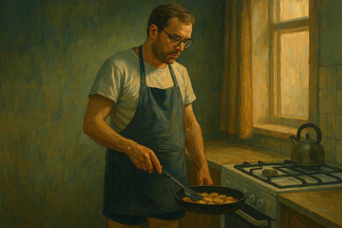 Картошка пригорела. Жизнь — тоже. Я так и застыл, с шумящим в ухе телефоном и лопаткой в руке, как будто кто-то сзади выдернул вилку из розетки — и всё внутри отключилось. Сердце ухнуло куда-то в пятки, а в голове загудело, как старый телевизор на «снегу». Молча смотрел, как шкварчит сковородка, будто это она страдала за меня.