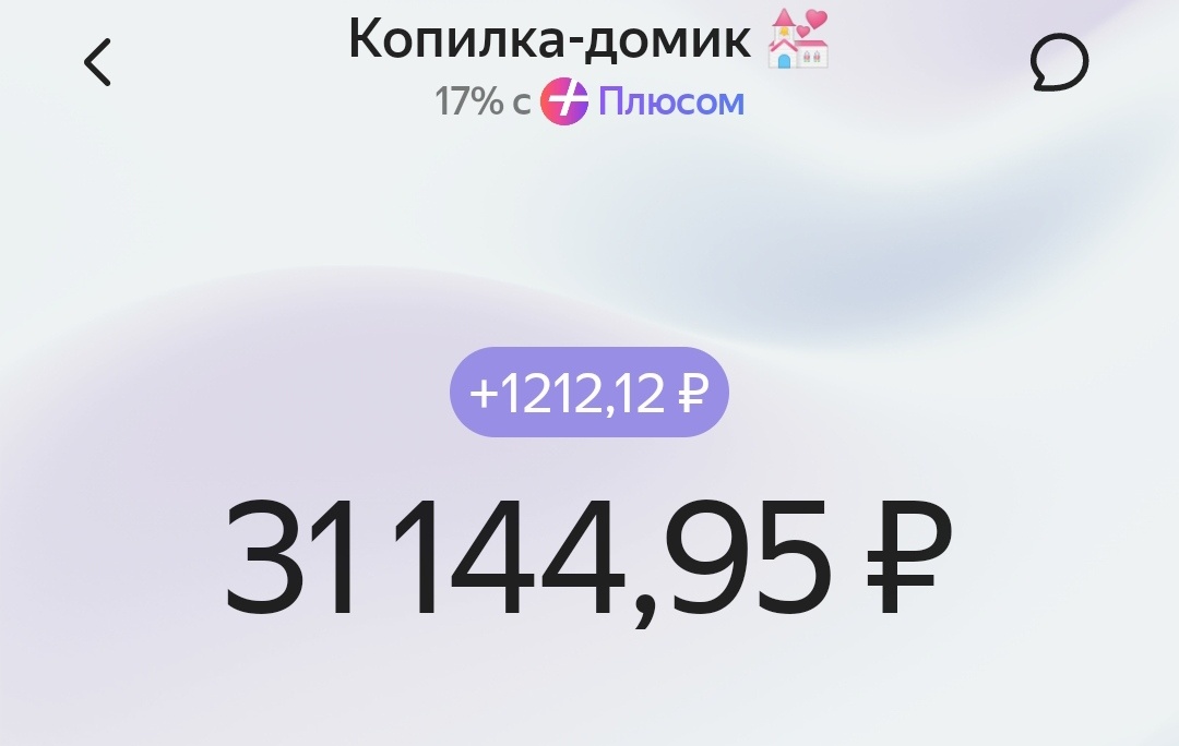 С этой копилкой всё стандартно: раз в месяц откладываю по 10 тысяч. Сейчас практически всё накопленное на вкладе в жёлтом банке.