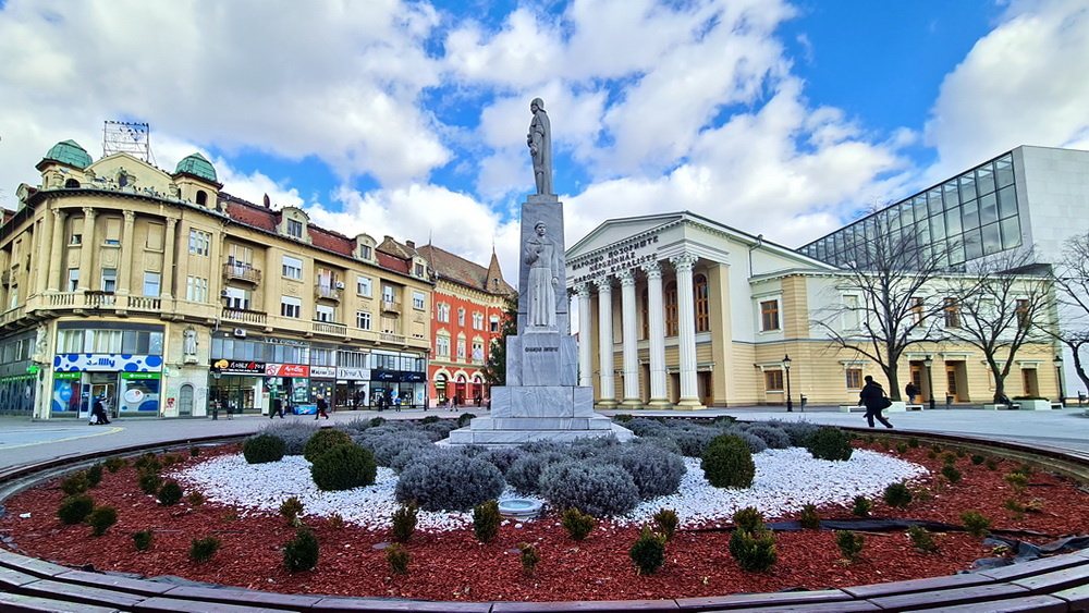 Площадь Свободы – главная площадь города. В центре площади – памятник самопровозглашенному царю Йовану Ненаду (Петар Палавиччини, 1927 г., восстановлен в 1991 г.), основателю современной Воеводины и лидеру последнего независимого сербского государства по мнению сербских историков.. Здание ратуши (1908–1910 гг.) - его высокая башня и вытянутый 45-метровый шпиль доминируют над окружающими домами. Фасады выполнены в красочном стиле венге