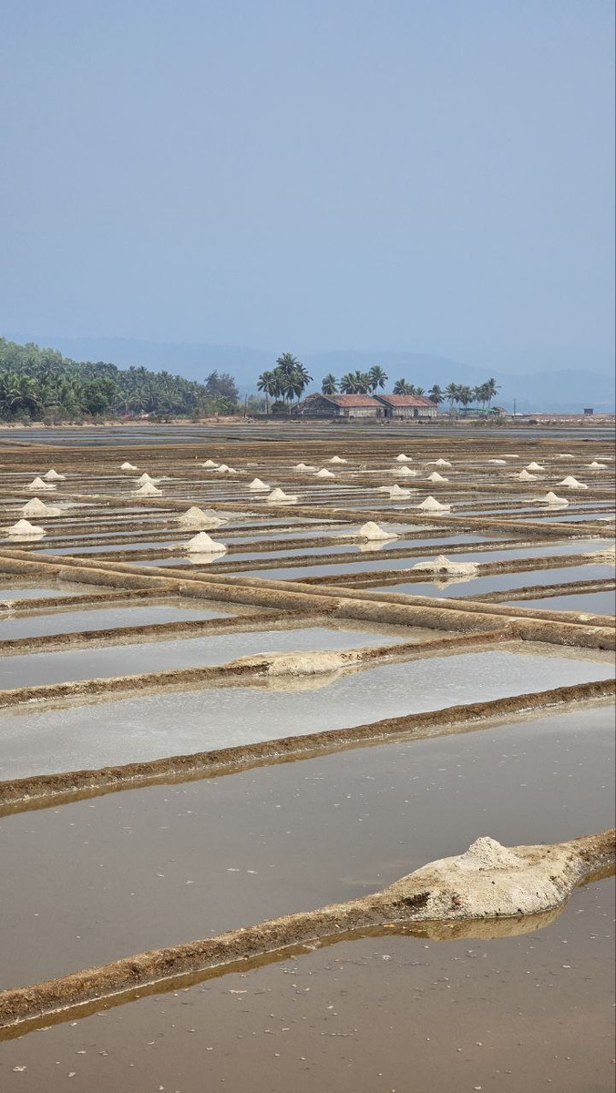 🇮🇳 Индия, Гоа и Гокарна: добыча соли Внезапным открытием для нас стало, что в Гоа и близлежащем к нему городе Гокарна (штат Карнатака) добывают соль: но не из привычных нам соленых озер (как, например, Баскунчак в Астраханской области — про него, кстати, поста не было, надо исправиться) или из соляных пещер (как, например, Salina Turda в Румынии или наши соляные пещеры в Соликамске), а просто выпариванием морской воды! Если верить интернету, промыслу этому уже больше 1500 лет, и, судя по всему, технология не сильно изменилась: 🔹Во время сезона дождей, очевидно, соль не очень выпаривается, поэтому в это время заняты рем онтом бассейнов для соли. Потом через систему каналов из океана их заполняют морской водой. 🔹 В феврале-марте период сбора, нам, получается, повезло оказаться в это время рядом с промыслом. Процесс полностью ручной, никакой автоматизации не замечено: соль и так дешевая (около 50-150 рупий за кг), с одного бассейна выходит около 1,5-2 тонн соли за сезон (то есть
