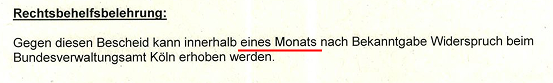 Протест (Widerspruch) на отказ должен поступить в BVA в течении двух недель-одного месяца с момента, когда заявитель или его доверенное лицо в Германии получили письменный отказ. Для подтверждения даты получения письма с отказом BVA, желательно сохранить конверт.