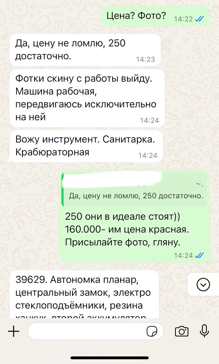 Продавец опять готов продать, опять много голосовых в ватцапе и опять никакой конкретики.