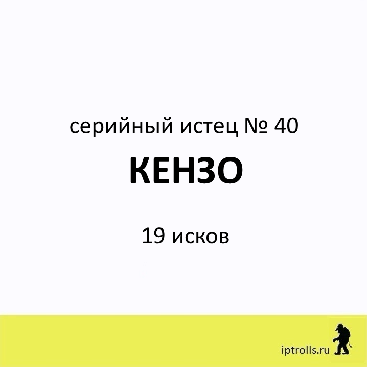 Мы собрали информацию о правообладателях, массово подающих претензии и иски в защиту авторских прав и прав на товарные знаки, а также полезные материалы и рекомендации, чтобы вы могли: Сейчас в базе более 60 серийных истцов. Вы можете проверить, не нарушаете ли вы чьи-то интеллектуальные права в рамках своего бизнеса или проекта, получить ответы на популярные вопросы и проконсультироваться. Правообладатель КЕНЗО внесен в базу IPTrolls под № 40. Переходи в карточку правообладателя на сайте IPTrolls, чтобы узнать больше. Если вы не нашли ответ на свой вопрос, посмотрите другие материалы проекта или напишите нам через форму на сайте. _____________________ команда проекта IPTrolls 🕵🏻♂️Следите за обновлением базы