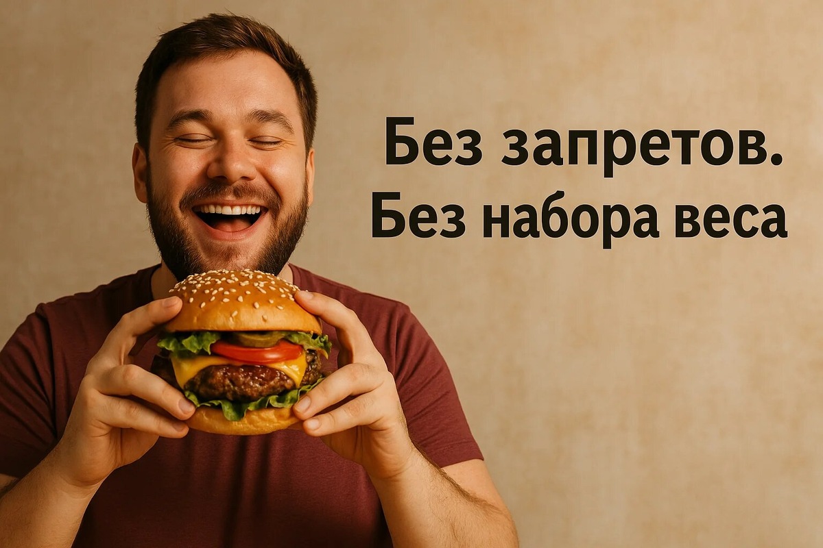 Я снял с себя все ограничения по продуктам — ел то, что хочется: пиццу, бургеры, сладкое, лапшу. Никаких «можно/нельзя». Только одно правило — не превышать свою норму калорий.