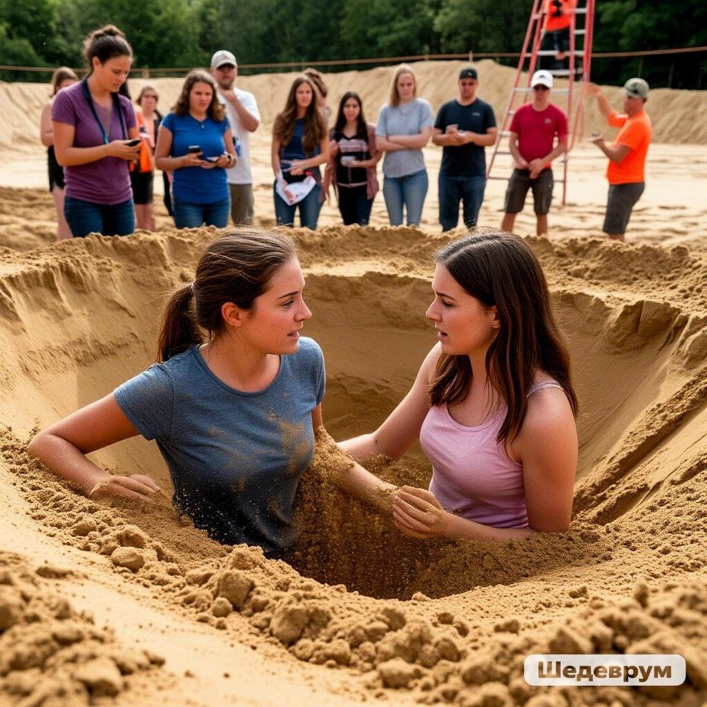 Недалеко от нас находилась группа людей, обсуждающих что-то важное. Услыхав наш зов, они сообщили, что уже вызвали спасателей. 🚒 Пока мы ждали, я наблюдала за ними: их внимание было погружено в что-то на экране телефона или страницах какого-то журнала. 📱📖 Ощутив интерес к их обсуждению, я неожиданно оказалась рядом с ними, и, оглянувшись назад, поняла, что моя знакомая по-прежнему в яме. 😧