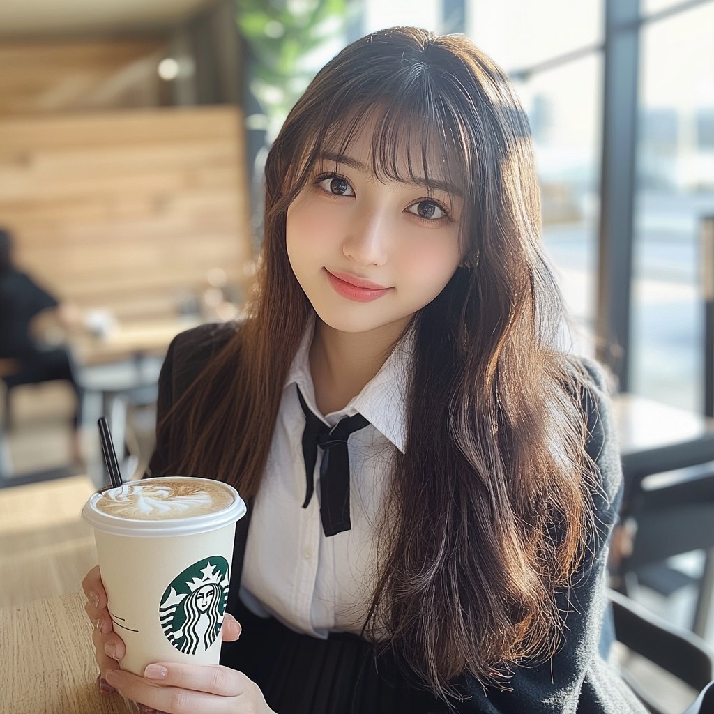 Создано на основе запроса: Japanese woman, popular Japanese idol, 17yo, beautiful long brown hair combed through, pretty plump figure, smiling face, eye makeup, professional makeup artist, perfect eyes, knees, quads, black shorts, school uniform, sitting on a Starbucks chair, cafe latte, sunset over the coastline, triceps, quads, front shot, the blinding light of the midday sun, shot with a Canon EOS R5, highly, illustration, --- Автоперевод: Японская женщина, популярный японский кумир, 17 лет, красивые длинные коричневые волосы, прочесываемую, симпатичную фигуру, улыбающееся лицо, макияж глаз, профессиональный визажист, идеальные глаза, колени, квадроциклы, черные шорты, школьная форма, сидя на стуле Старбакса, кафе Латте, закат над побережью, трицепс, квадроцикл, сноп. Красиво выглядит? 🤔 https://dzen.ru/id/65c0c65c86e4f837c27b24d7 #ИИ #AI #нейросеть #midjourney #art