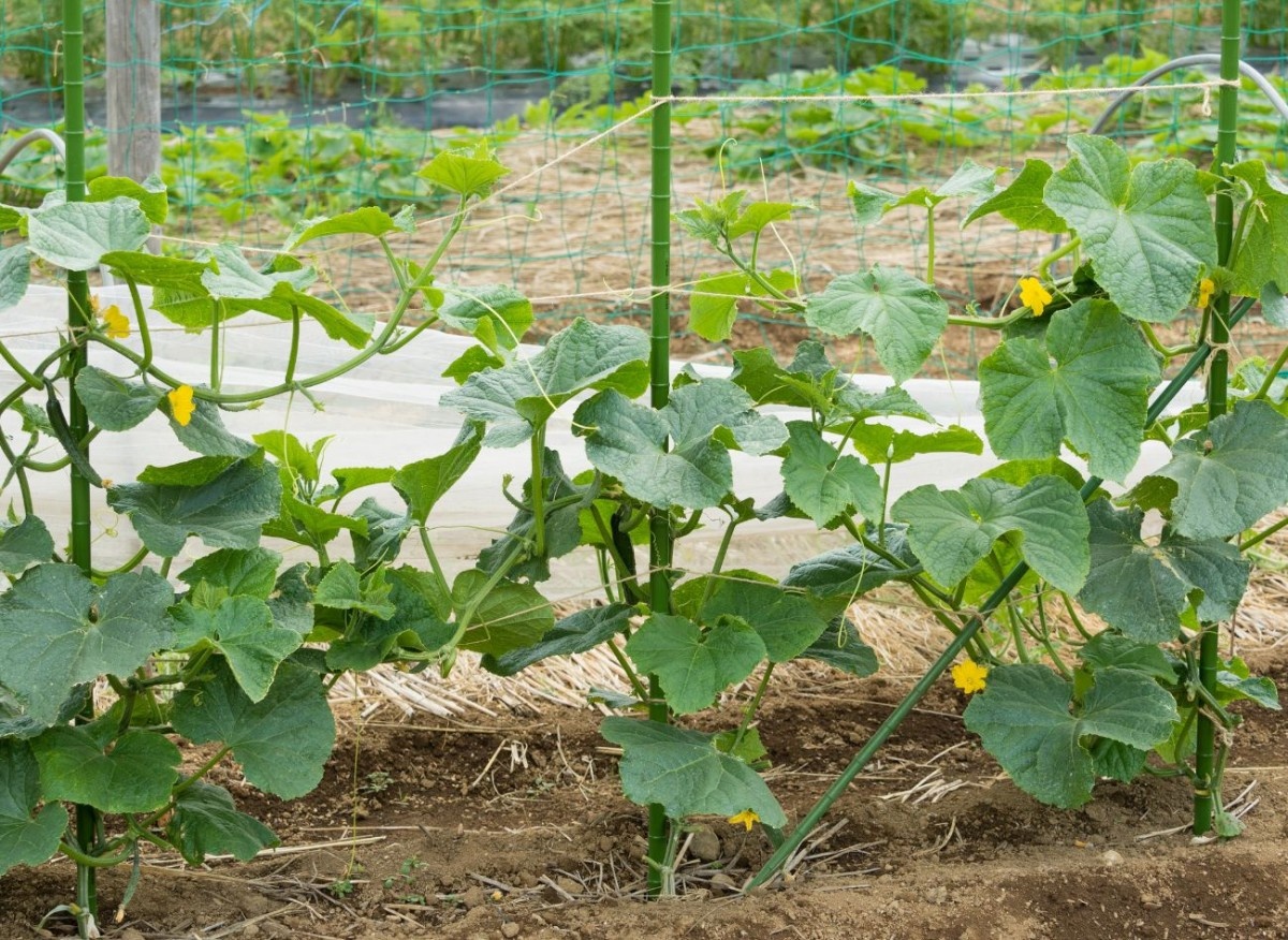 Чтобы продлить плодоношение и упростить сбор урожая, рекомендуется выращивать огурцы вертикально на опорах. Это также освободит место для новых саженцев.