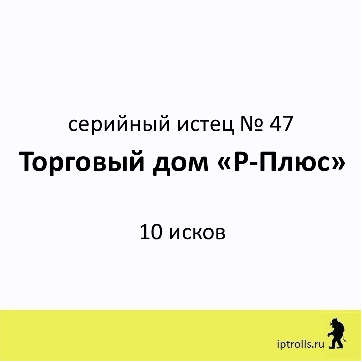 Мы собрали информацию о правообладателях, массово подающих претензии и иски в защиту авторских прав и прав на товарные знаки, а также полезные материалы и рекомендации, чтобы вы могли: Сейчас в базе более 60 серийных истцов. Вы можете проверить, не нарушаете ли вы чьи-то интеллектуальные права в рамках своего бизнеса или проекта, получить ответы на популярные вопросы и проконсультироваться. Правообладатель Торговый дом "Р-Плюс" внесен в базу IPTrolls под № 47. Переходи в карточку правообладателя на сайте IPTrolls, чтобы узнать больше. Если вы не нашли ответ на свой вопрос, посмотрите другие материалы проекта или напишите нам через форму на сайте. _____________________ команда проекта IPTrolls 🕵🏻♂️Следите за обновлением базы