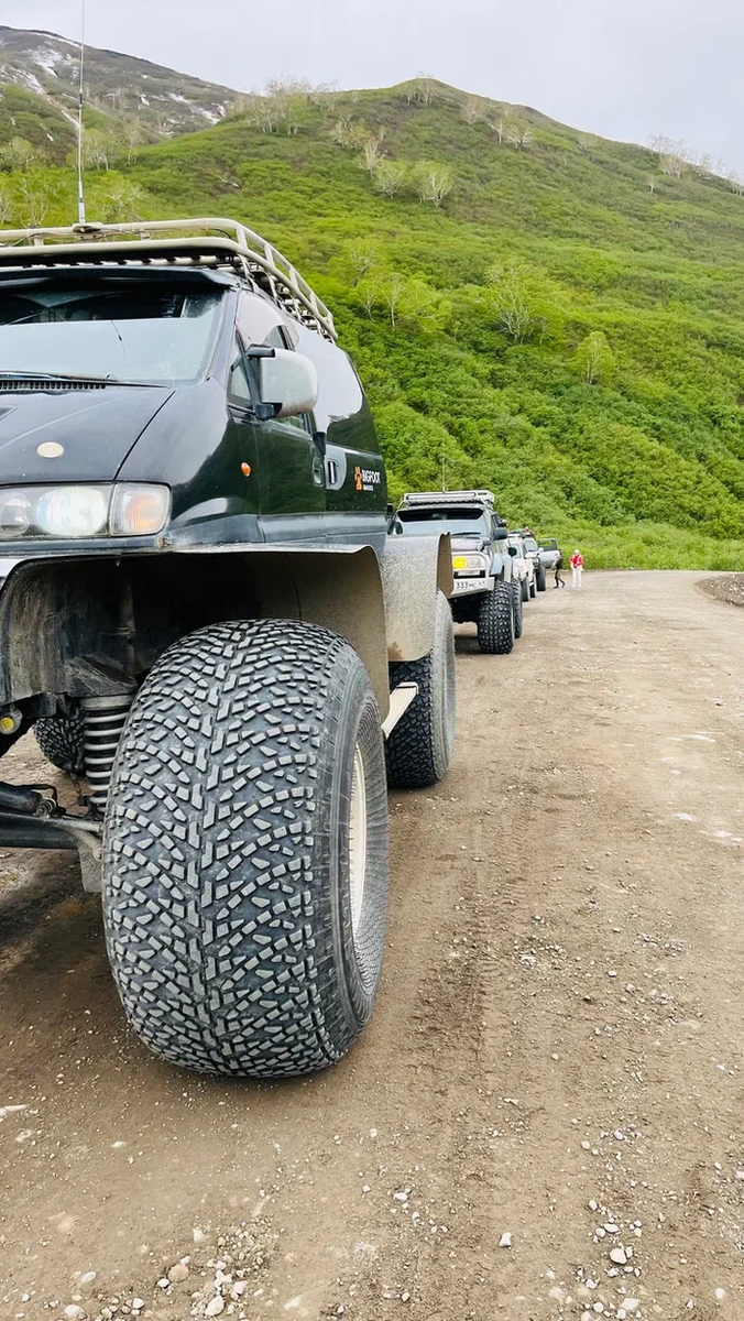 Джипы, которые планируют съехать потом с этой дороги в сторону... "хрен пойми куда", едут не по одному, а группами, чтобы в случае чего, а такие случаи даже у нас произошли, помогать друг другу в пути. Дорог до вулканов нет. Едут водители наощупь.