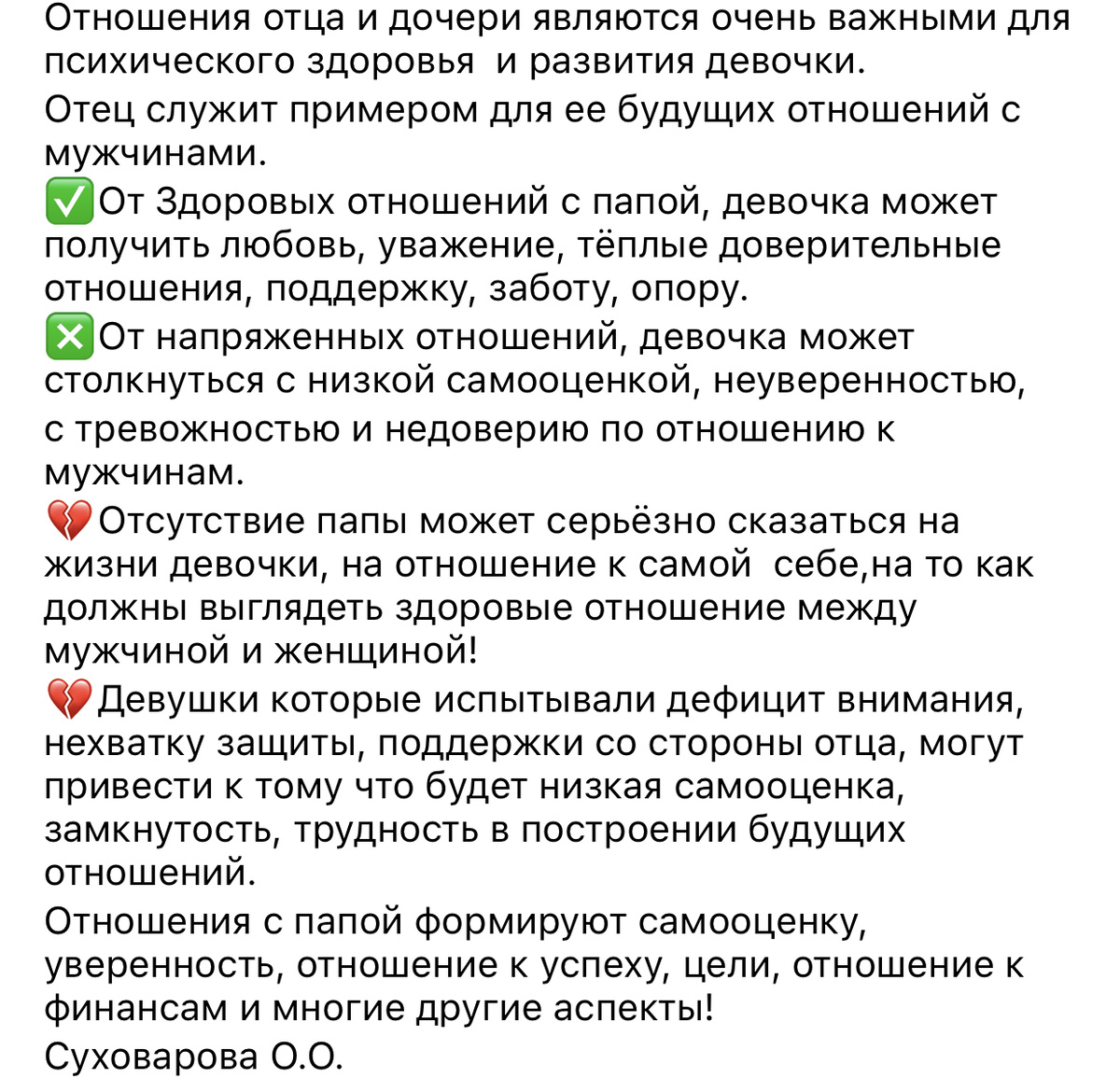 Какие чувства у тебя вызывает слово <Папа, Отец>? ❤️💔тепло и радость или боль и разочарование? К сожалению не у всех девочек были папы, а если были, то не было отношений! Или сложные отношения с отцом, который был, либо он отсутствовал или не участвовал в твоей жизни. Если отец оставил шрам в твоём сердце, если ты ненавидишь, испытываешь злость по отношению к нему, то необходимо избавиться от этих чувств! Закапывать в себя ещё глубже проблемы, эмоции, не нужно! что было: злость, грусть, непонимание, боль, обиды, гнев и т.д. Только после принятия придёт покой. Не нужно требовать от себя, и нельзя к этому прийти! Это необходимо прожить и признать! Можно также задать себе вопрос: для чего мне дан такой отец? чему он меня научил?