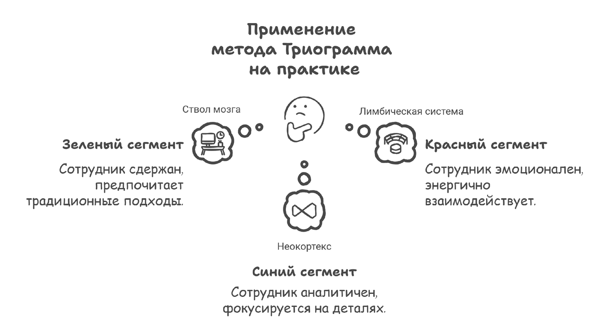 Одним из таких инструментов является метод Триограмма, позволяющий быстро определить доминирующий тип мышления человека. В России этот метод известен с конца 2000-х годов и получил широкое распространение в сфере управления персоналом и бизнес-консультирования.