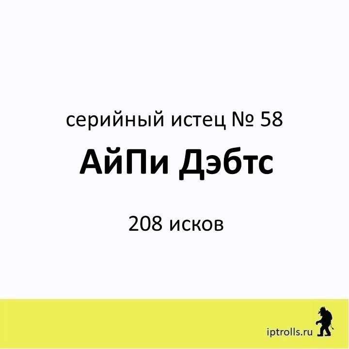 Мы собрали информацию о правообладателях, массово подающих претензии и иски в защиту авторских прав и прав на товарные знаки, а также полезные материалы и рекомендации, чтобы вы могли: Сейчас в базе более 60 серийных истцов. Вы можете проверить, не нарушаете ли вы чьи-то интеллектуальные права в рамках своего бизнеса или проекта, получить ответы на популярные вопросы и проконсультироваться. Правообладатель АйПи Дебтс внесен в базу IPTrolls под № 58. Переходи в карточку правообладателя на сайте IPTrolls, чтобы узнать больше. Если вы не нашли ответ на свой вопрос, посмотрите другие материалы проекта или напишите нам через форму на сайте. _____________________ команда проекта IPTrolls 🕵🏻♂️Следите за обновлением базы