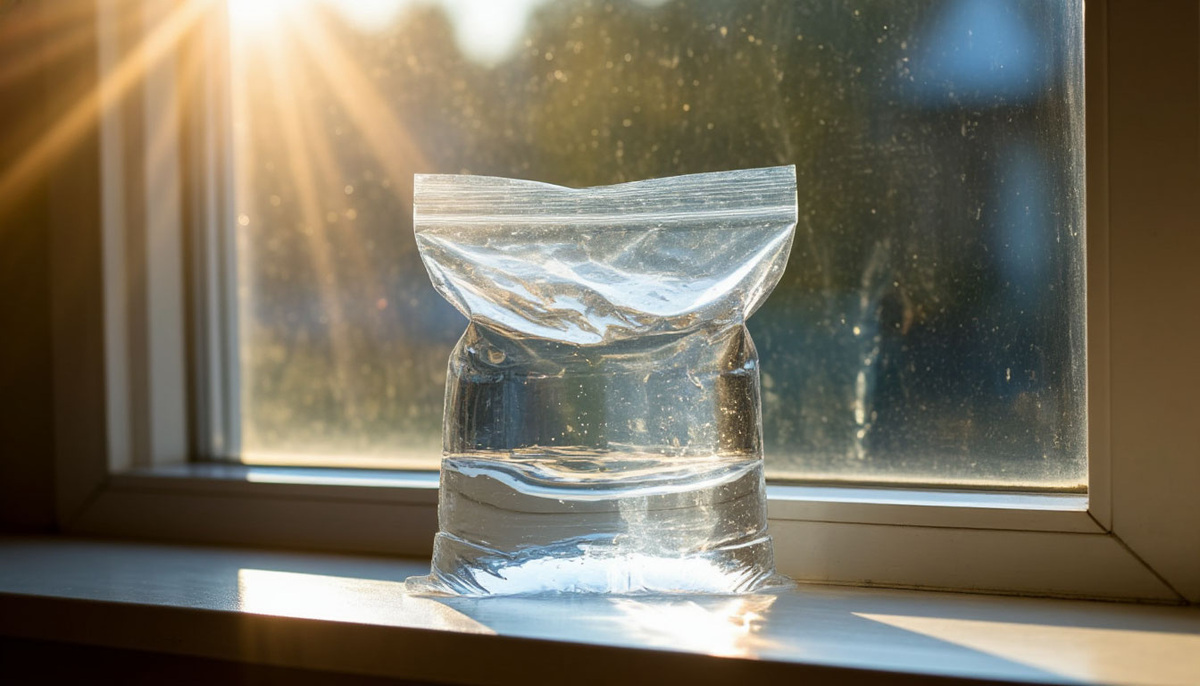 Скажу честно, я сначала скептически хмыкнул. Но всё же решил попробовать. Взял обычный прозрачный пакет, налил в него воды (примерно наполовину), завязал и положил на подоконник.