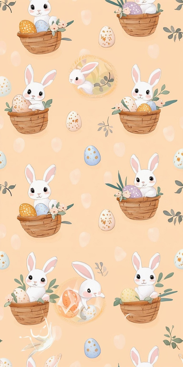 Создано на основе запроса: Create cute Seamless pattern of Easter bunnies with baskets and eggs perfect for holiday spring and festiv
