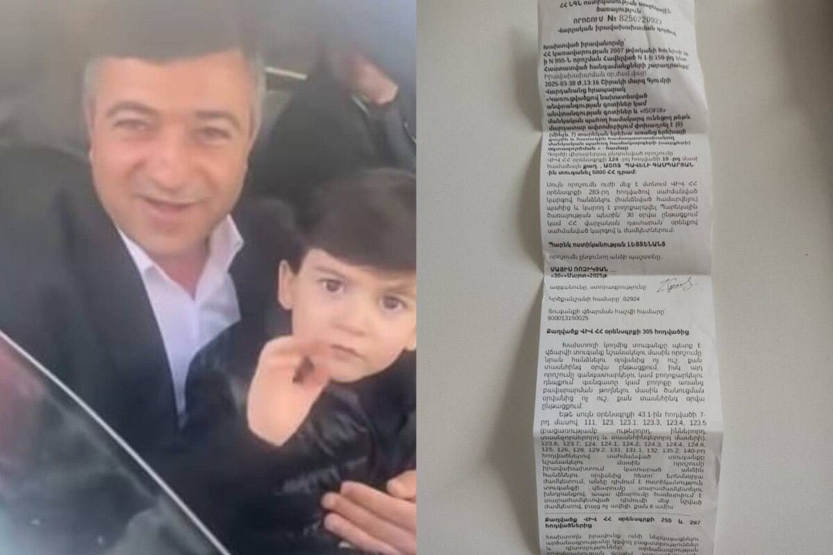 ԶԼՄ հաղորդումների հիման վրա պարեկային ծառայությունը տուգանել է Սարիկ Մինասյանի վարորդին` մեքենայում մինչև 7 տարեկան երեխա առանց երեխայի