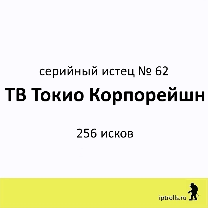 Мы собрали информацию о правообладателях, массово подающих претензии и иски в защиту авторских прав и прав на товарные знаки, а также полезные материалы и рекомендации, чтобы вы могли: Сейчас в базе более 60 серийных истцов. Вы можете проверить, не нарушаете ли вы чьи-то интеллектуальные права в рамках своего бизнеса или проекта, получить ответы на популярные вопросы и проконсультироваться. Правообладатель TV Tokyo Corporation внесен в базу IPTrolls под № 62. Переходи в карточку правообладателя на сайте IPTrolls, чтобы узнать больше. Если вы не нашли ответ на свой вопрос, посмотрите другие материалы проекта или напишите нам через форму на сайте. _____________________ команда проекта IPTrolls 🕵🏻♂️Следите за обновлением базы