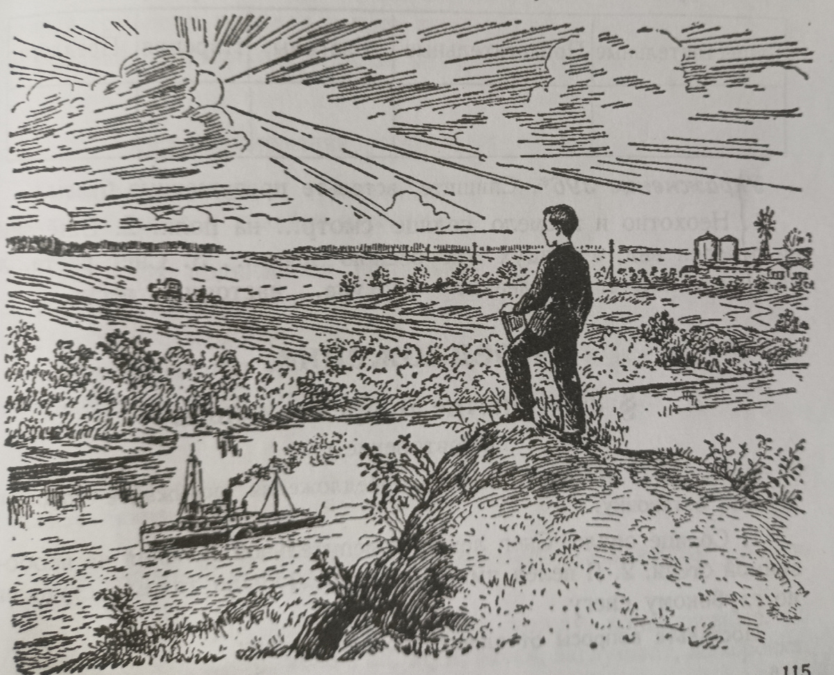1. Проверка домашнего задания. 2. Актуализация знаний и объявление темы урока. Прочитайте наречия, задайте к ним вопросы и объясните их правописание: Вправо, влево, внизу, вверху, вдали, вблизи, ярко, весело, оттуда, дальше, сверху, здесь. Сегодня мы будем составлять рассказ по картинке с использованием этих наречий. 3. Работа по теме урока. Упр. 394. Рассмотрите картинку. Выпишите на доску существительные, которые видно на картинке: Небо , облака, солнце, горизонт, лес, поле, деревья, столбы, трактор, зернохранилище, река, пароход, холм, мальчик, книга. Прочитайте глаголы, данные в упражнении. - К каким существительным подходят эти глаголы? - К каким наречиям подходят эти глаголы? Составьте устно рассказ. Вступление запишем одинаковое. А основную часть текста вы напишете самостоятельно. Озаглавьте свой текст. После чтения текстов детьми, разбирается второе предложение по частям речи: 4. Домашнее задание. Упр. 395. Выпишите слова по частям речи. Такое же задание будет в проверочной ра