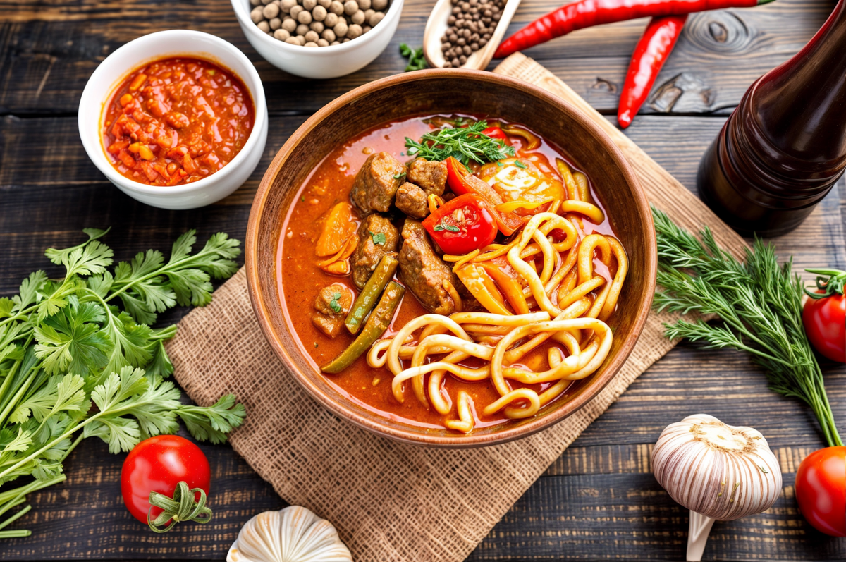 Привет, друзья! Сегодня я хочу поделиться с вами рецептом одного из моих любимых блюд — лагмана с курицей. Этот вариант лагмана получается менее жирным, чем традиционный с бараниной, но не уступает ему по насыщенности вкуса. Готовить его несложно, а результат порадует всю семью. Давайте приступим! Для приготовления лагмана нам понадобятся: Совет: Если у вас нет лагманной лапши, можно использовать любую другую длинную лапшу или даже спагетти. Подготовка ингредиентов: Обжарка курицы: Добавление овощей: Тушение: Приготовление лапши: Подача: Лайфхак: Чтобы лапша не слипалась, после промывания сбрызните ее небольшим количеством растительного масла и перемешайте. Вот и все! Наш домашний лагман с курицей готов. Это сытное и ароматное блюдо прекрасно подойдет для семейного обеда или ужина. Надеюсь, этот рецепт вдохновит вас на кулинарные эксперименты и принесет удовольствие вашим близким. Приятного аппетита! Если вам понравился этот рецепт, делитесь своими впечатлениями и фотографиями в