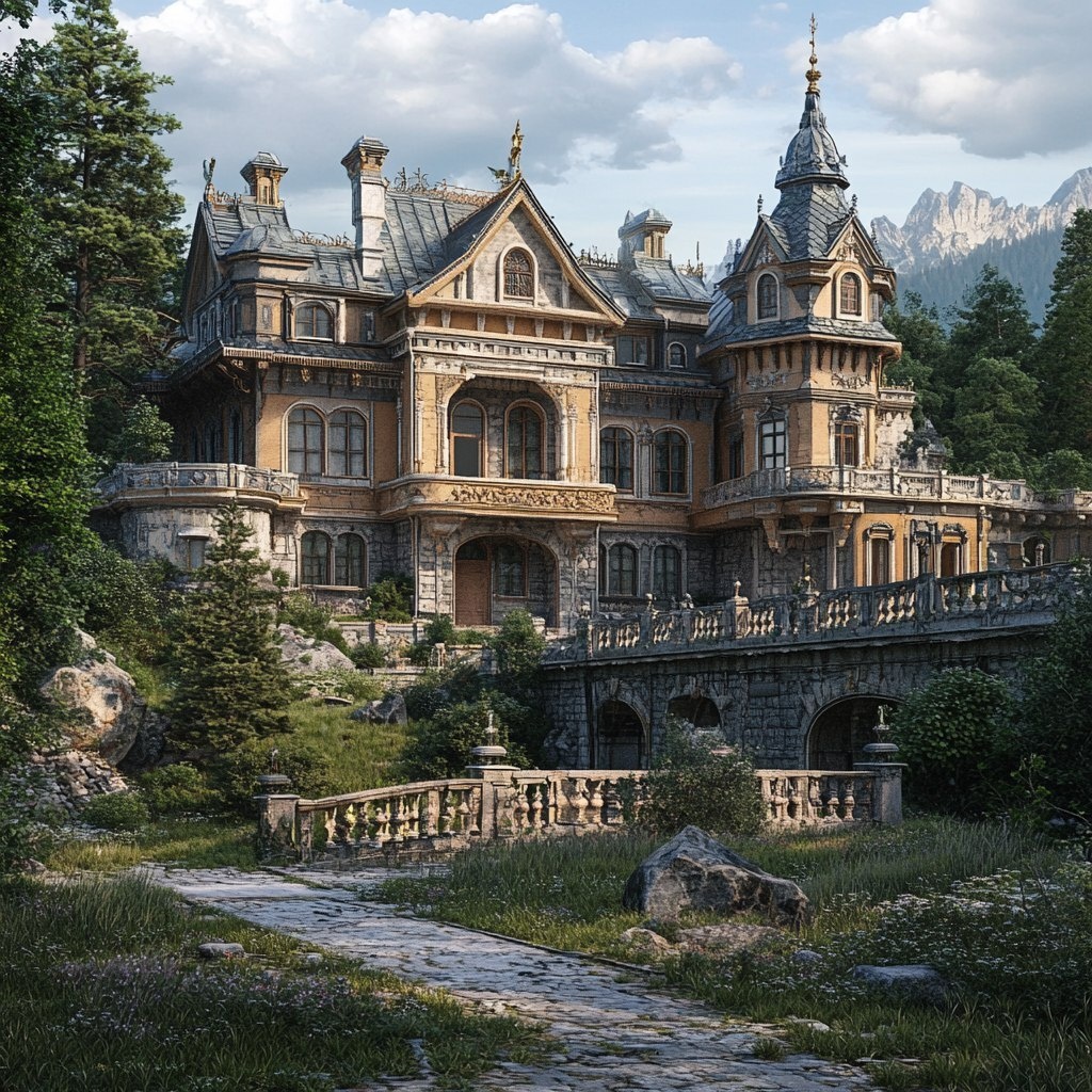 Создано на основе запроса: A Russian-style aristocratic mansion castle with traces of a rough restoration of what had fallen and a rough tinker of what had fallen. realistic --- Автоперевод: Аристократический особняк в российском стиле со следами грубого восстановления того, что упало, и грубым возителем того, что упало. Как тебе иллюстрация? 🤔 https://dzen.ru/id/65c0c65c86e4f837c27b24d7 #ИИ #AI #нейросеть #midjourney #art