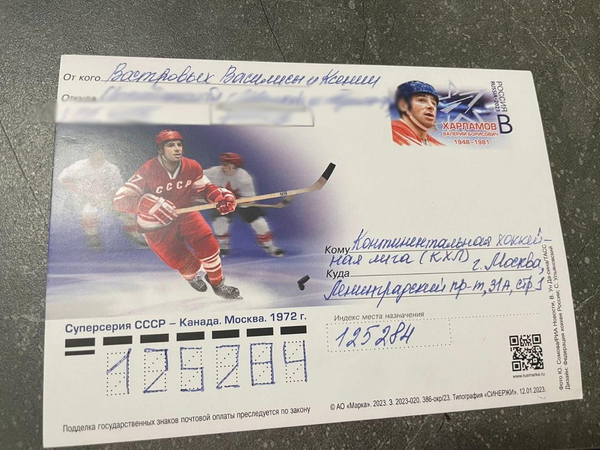 «Здравствуйте, уважаемые сотрудники Континентальной хоккейной лиги! Пишут Вам Василиса и Ксюша, нам 8 лет, мы учимся во втором классе. Мы занимаемся футболом в СШОР по ИВС города Щелково, но и хоккей очень любим. Мы хотим поздравить Вас с Днем защитника Отечества и пожелать крепкого здоровья, мира, сил и стойкости в трудную минуту».