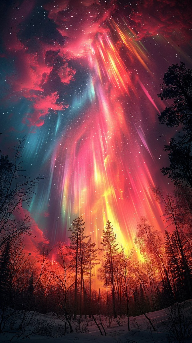 Создано на основе запроса: Enchanted aurora skyscape, 9:16 vertical composition with triple-layer dynamics: 1