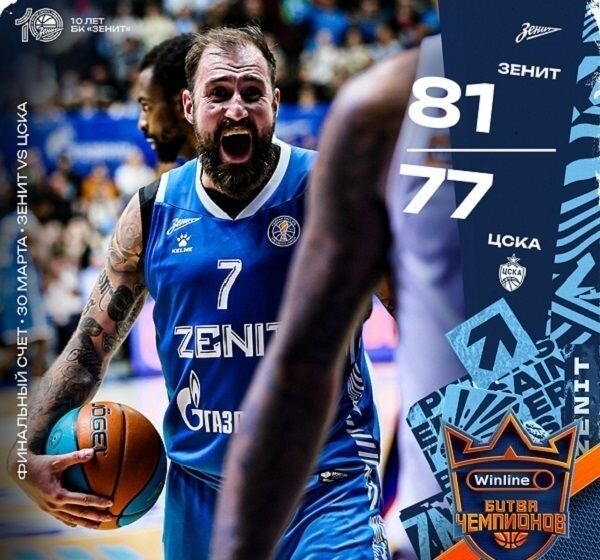 БК «Зенит» в матче чемпионата Единой лиги ВТБ сегодня дома победил ЦСКА. Встреча, которая прошла в Петербурге, закончилась со счётом 81:77 в пользу хозяев площадки. Лучшим у «Зенита» стал Окаро Уайт, который набрал 17 очков. В сегодняшнем матче сине-бело-голубые обновили свой рекорд по победам подряд, доведя серию до шестандцати. После победы над ЦСКА «Зенит» занял первое место в турнирной таблице чемпионата. Следующую игру петербургский клуб проведёт на выезде 3 апреля. Его соперник – московский МБА-МАИ.