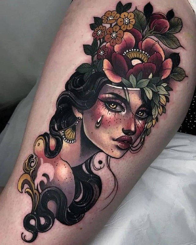 Друзья, cегодня мы хотим упомянуть один из самых популярных и эффектных стилей современной татуировки – неотрадишнл (neotraditional). Этот стиль сочетает в себе элементы классического олдскула и новые тенденции, создавая яркие, детализированные и запоминающиеся работы. Что такое Неотрадишнл❓ Неотрадишнл (или нео-традиционный) – это стиль татуировки, который развился из традиционного американского стиля (old school tattoo). Он характеризуется четкими контурами, насыщенными цветами, плавными переходами и детализированными элементами. Неотрадишнл сочетает в себе классические мотивы с современными техниками и тенденциями, создавая яркие и запоминающиеся образы. Основные Черты Стиля Неотрадишнл: Четкие Контуры. Как и в олдскуле, в неотрадишнл используются четкие и жирные контуры, которые придают татуировке выразительность и долговечность. Насыщенные Цвета. В неотрадишнл используются яркие и насыщенные цвета, которые создают эффектный и привлекательный вид. Часто используются контрастные
