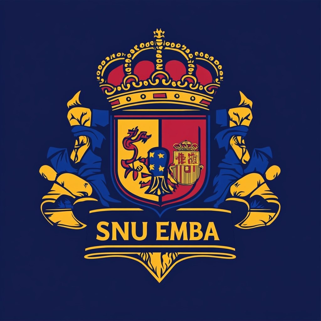 Создано на основе запроса: a logo for a PK T-shirt for "SNU EMBA", several variations inspired by the uniforms of iconic Spanish football clubs. The logo should reflect both academic prestige and Spanish cultural identity.