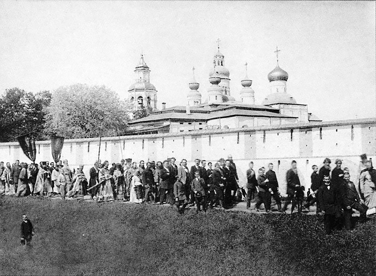На снимке от 3 июня 1902 года крестный ход с иконой преподобного Димитрия Прилуцкого у стен Спасо-Прилуцкого монастыря. Вид со стороны реки.