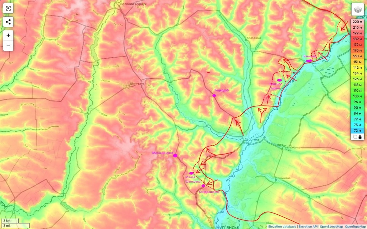 Наши штурмовики сумели выйти к трассе Каменка — Большой Бурлук, что является приговором гарнизону ВСУ в этом последнем оставшемся под контролем противника важном селе на западном берегу реки Оскол. Одновременно с этим наши части сумели взять под контроль высоты над Каменкой с северо-востока.