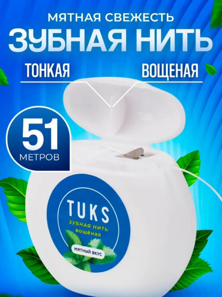Зубная нить вощеная тонкая со вкусом мяты 51 метр